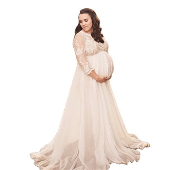 Europa y los Estados Unidos Mujeres de manga larga de encaje de malla de gasa Mujeres embarazadas Vestido largo que fluye Vestido de fotografía