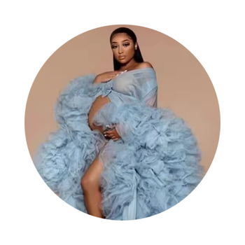 Bata de novia embarazada con volantes de tul largo, camisón de maternidad de punto multicolor Sexy para boda o sesión de fotos