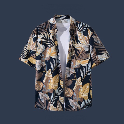 2025 Novo Design Impressão Digital Camisa Floral de manga curta dos homens havaiano Vintage Loose-fitting Praia Camisa